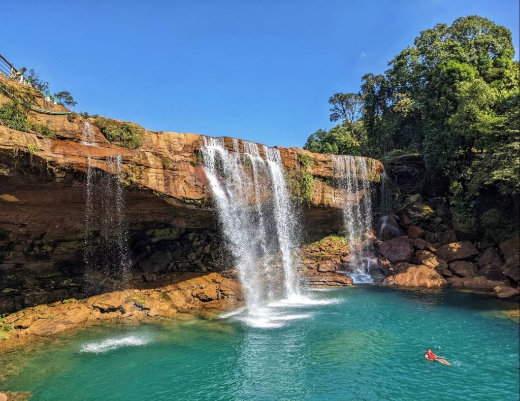 “Majestic Krangsuri Falls amidst the lush greens”