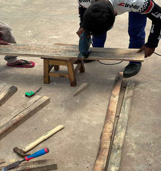 In Image – The learners using the Power Tools for carpentry
