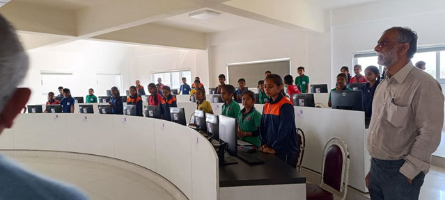 On February 14, 2024, Dr. Anil Shah, Chairman of Smart Village Movement (SVM), visited Eklavya Model Residential School (EMRS) in Goraj village, Vadodara district, Gujarat, accompanied by Dr. Vikram Patel, Chairman of Muni Seva Ashram (MSA)