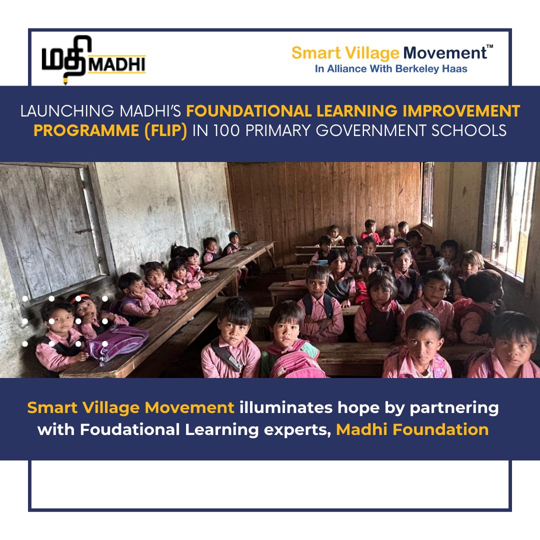 In today’s fast-paced world, foundational learning lays the groundwork for a successful educational journey. Yet, many children across India face challenges in these fundamental skills. According to a World Bank study, over half of children under 10 struggle with basic reading. Reading fluently and performing critical arithmetic operations is essential for a Std 3 child. Still, ASER 2022 reveals alarming statistics: 80% of Std 3 students cannot read a Std 2 level text, while 82% struggle with subtraction. Smart Village Movement recognizes the urgency of addressing this crisis. To tackle the challenge head-on, we’re partnering with Madhi Foundation, a renowned non-profit organization based in Chennai, to launch Madhi’s Foundational Learning Improvement Programme (FLIP) in 100 primary government schools in the East Garo Hill district of Meghalaya. Madhi supports the public school system, and works closely with the education ecosystem to address educational inequity. Established in 2016, Madhi has expanded its reach from 3 schools to an impressive 37,000 across Tamil Nadu by 2021. Their comprehensive model prioritizes the last-mile child, ensuring that all program design decisions revolve around their needs.Read More |