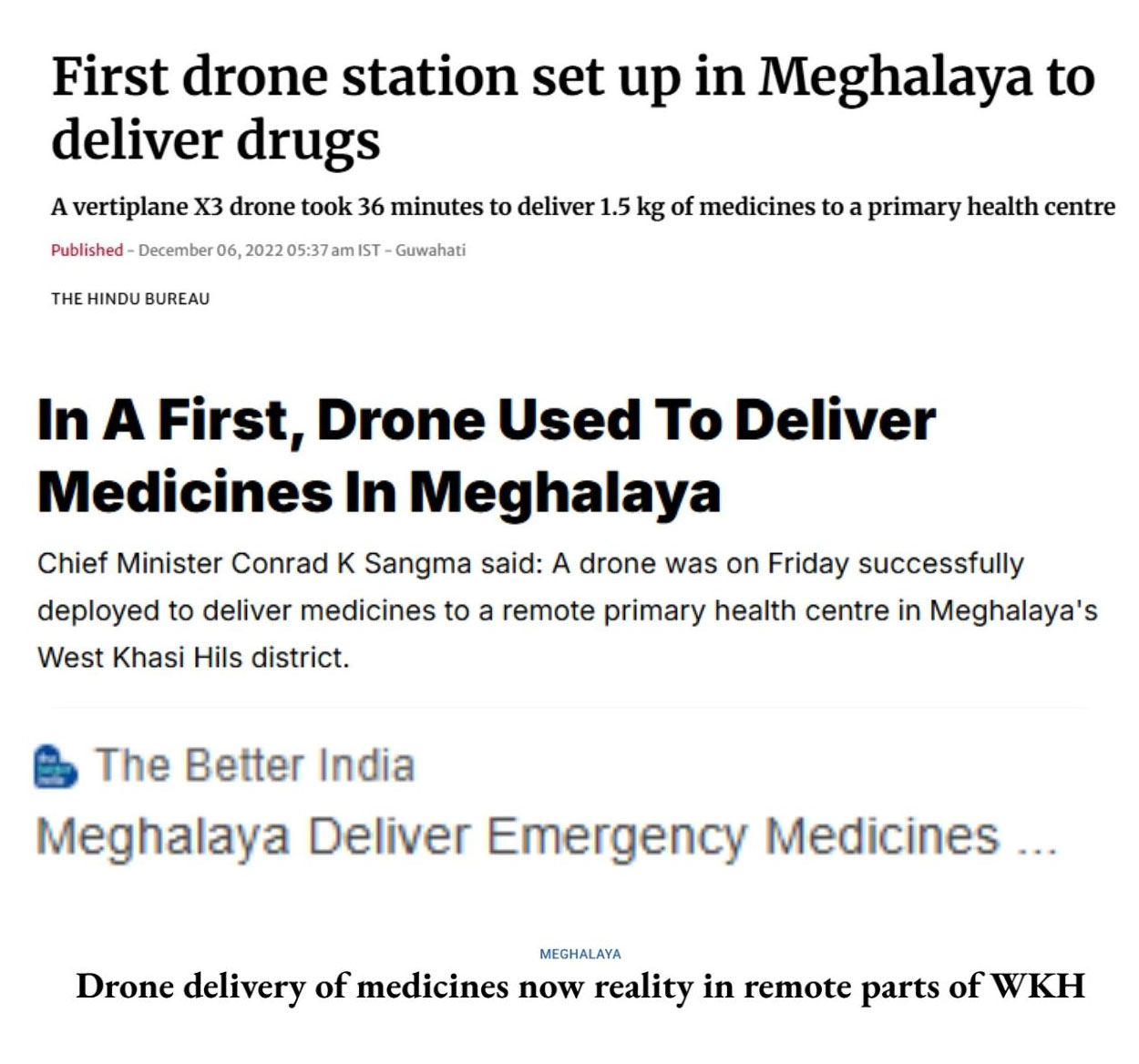 - From a successful pilot, now expanding into the Meghalaya Drone Delivery Network, connecting multiple districts.
