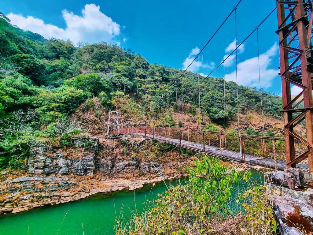 Now let’s introduce you to the cleanest river in Asia. Yes, the cleanest river in Asia also flows in Meghalaya through Mawlynnong Village known as “Dawki” or the “Umngot River”. At the first glance of Dawki from Dawki Bridge, you are sure to fall in love with it. The river is crystal clear and has a fresh aqua-green color. As you row in a boat in Dawki, you will be able to see everything underwater, rock, fish, marine plants, the boat seems like it’s suspended in air because the water is just that clear.